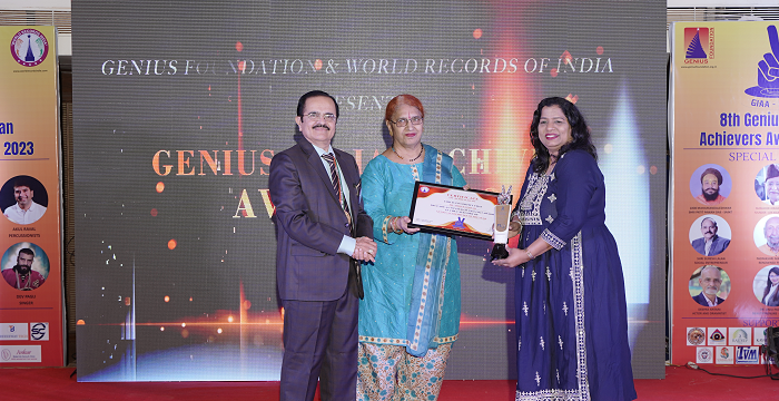 DR. AMRUTA PAWAR WON THE RECORD OF ACHIEVING MAXIMUM QUALIFICATION AS A WOMAN ACHIEVER IN THE YEAR 2023. SHE IS INTO THE TEACHING FIELD FOR THE